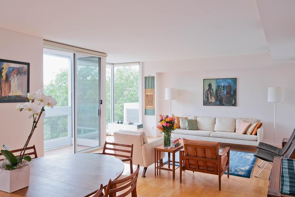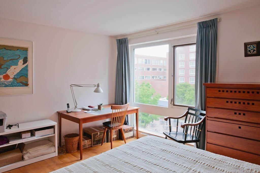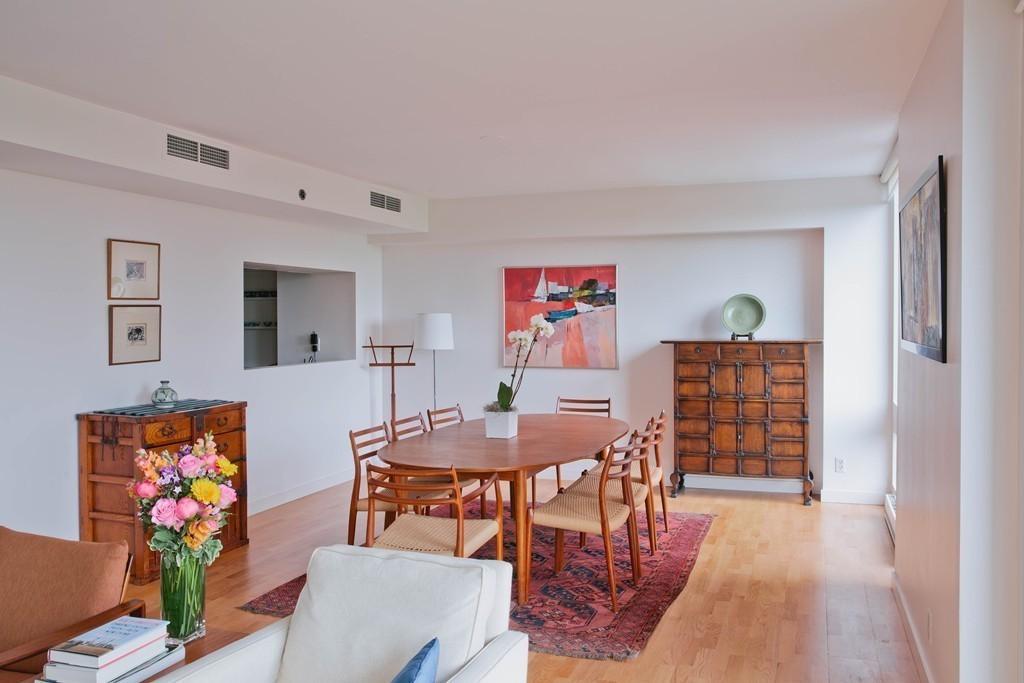 Enjoy serene, captivating views from this conveniently located residence in the heart of Harvard Square. Your first sensation is that you’re looking down from your Fifth Avenue or Central Park West apartment at Central Park, but with the surprise of seeing the Charles River between the trees. The open living/dining room has a wall of windows with direct access to the private balcony. The white eat-in-kitchen has an abundance of cabinetry and is open to the dining room for leafy river views. Both bedrooms overlook the courtyard of Charles Square. The master bedroom suite has a walk-in closet and bathroom with double vanity. The second bedroom, used as a combination guest room/office now, has a wall of bookshelves, a double closet, and abuts the second full bathroom. Added features are central air conditioning, in-unit washer and dryer, extra storage; a prime parking space in the garage; a lovely, spacious common terrace. Full-service building; 24-hour concierge; carefree living.
